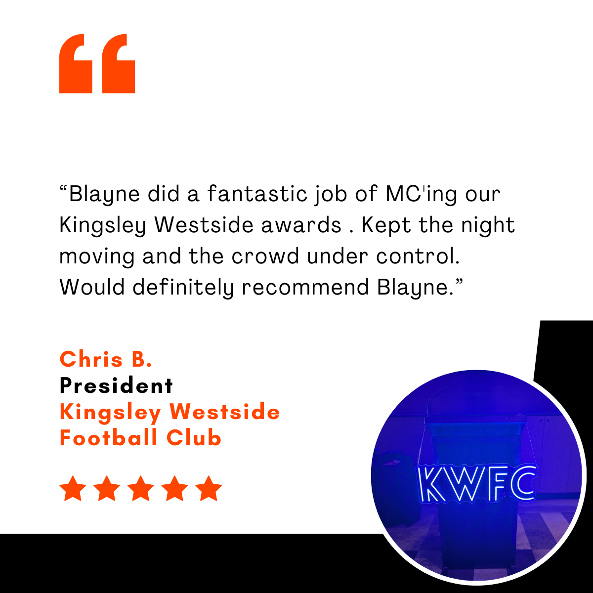 MC and event hosting across Perth for diverse occasions, from formal functions and sports clubs awards nights to social gatherings.